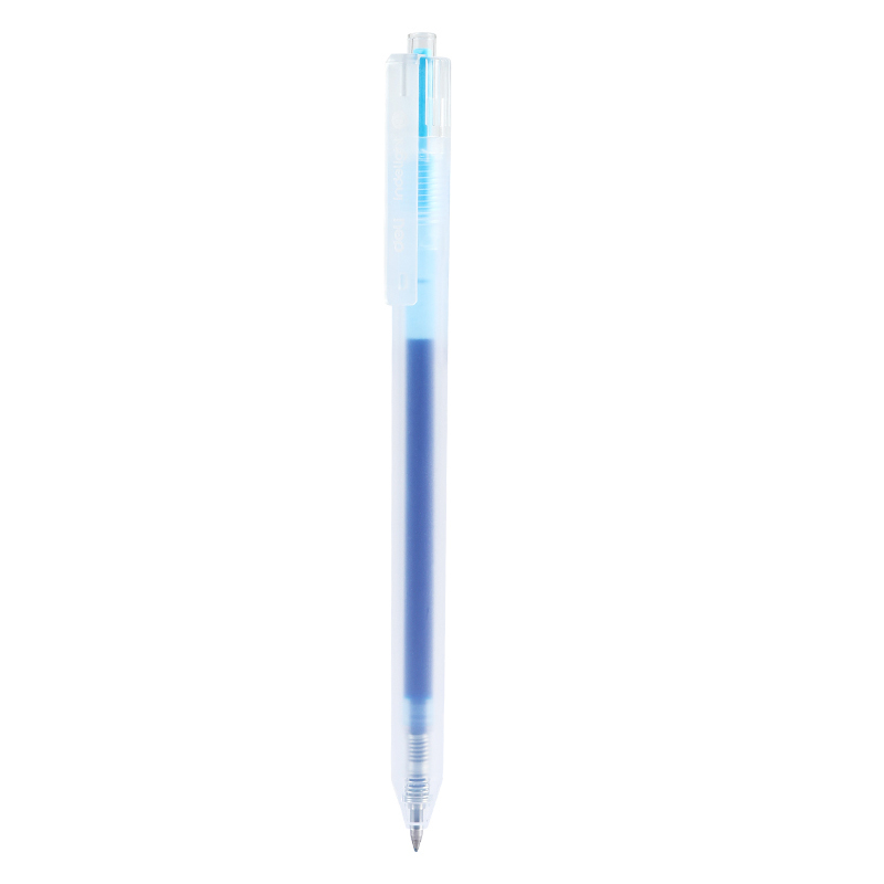 Pixul cu gel Deli 0.5 mm, culoare bleu, oferă o scriere fină și fluidă, ideală pentru linii curate și precise. Este prevăzut cu mecanism retractabil și vârf metalic rezistent. Corpul transparent îți permite să urmărești nivelul de cerneală în orice moment.