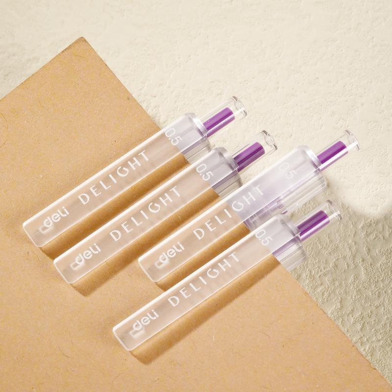Pixul cu gel Deli Delight este alegerea potrivită atunci când îți dorești o scriere clară, fluidă și confortabilă. Vârful subțire de 0.5 mm trasează linii fine și uniforme, fiind ideal pentru notițe, teme, agende sau documente care necesită precizie.