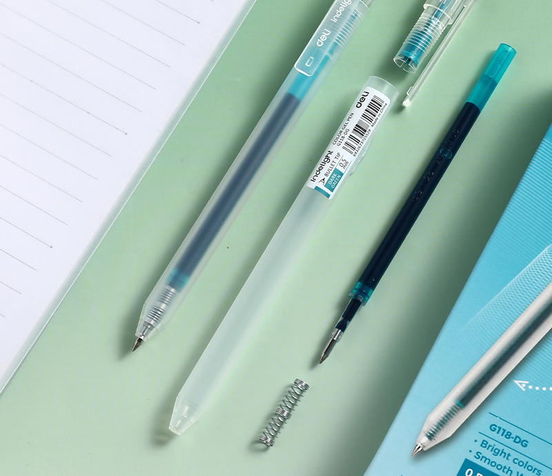 Cerneala de tip gel oferă o aplicare fluidă și constantă, fără întreruperi, pentru o experiență de scriere confortabilă. Nuanța verde închis este elegantă și ușor de remarcat pe hârtie, fiind potrivită pentru organizarea informațiilor sau pentru a adăuga varietate în scriere.