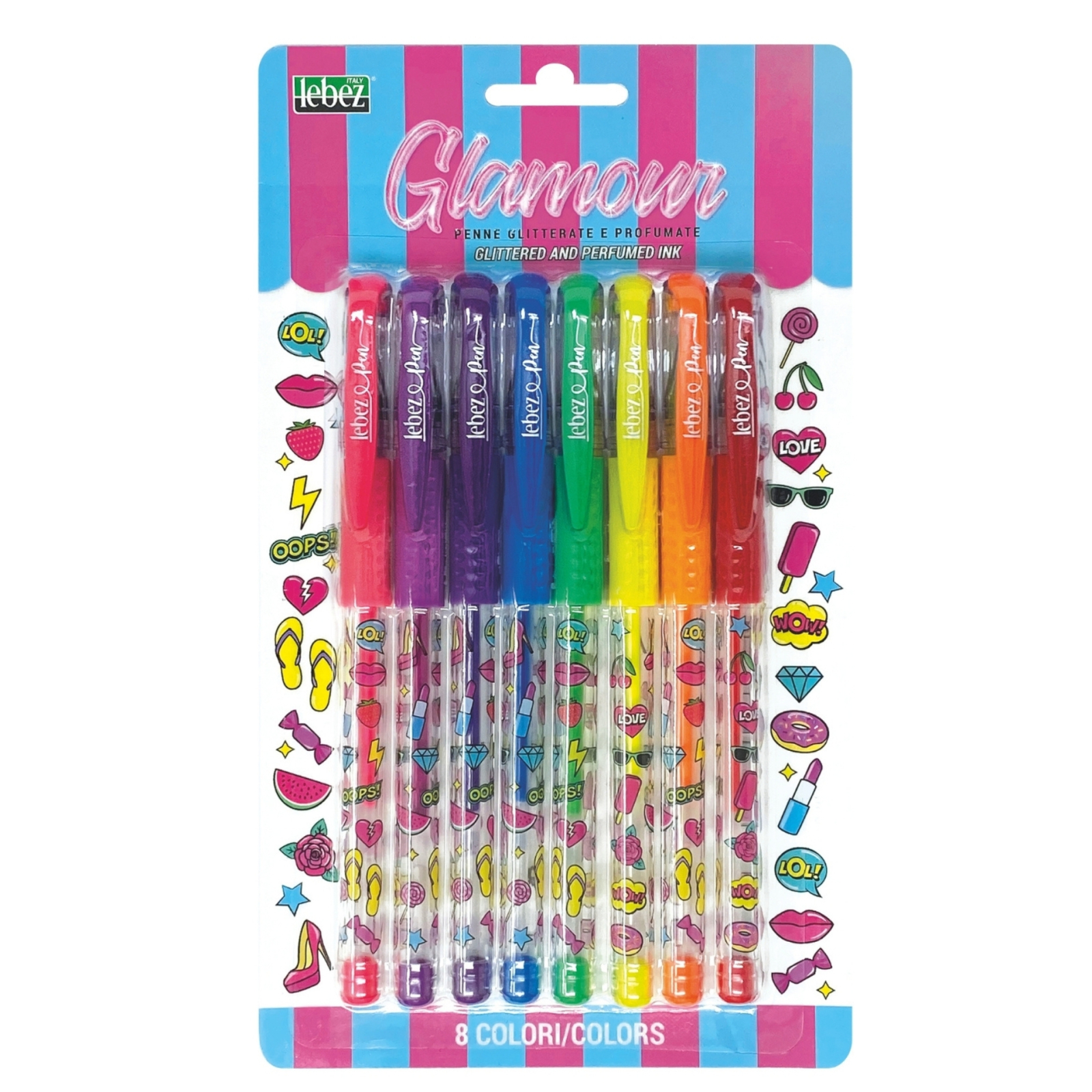 Pixurile cu sclipici parfumat Glamours sunt ideale pentru cei care iubesc papetaria creativă și detaliile jucăușe. Setul include 8 pixuri gel, fiecare într-o culoare diferită, cu cerneală parfumată și sclipici, perfecte pentru scris, desen, evidențieri sau decorarea caietelor și jurnalelor.