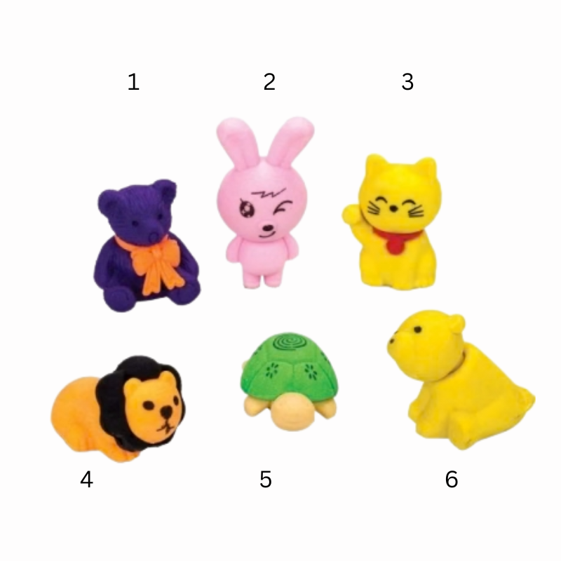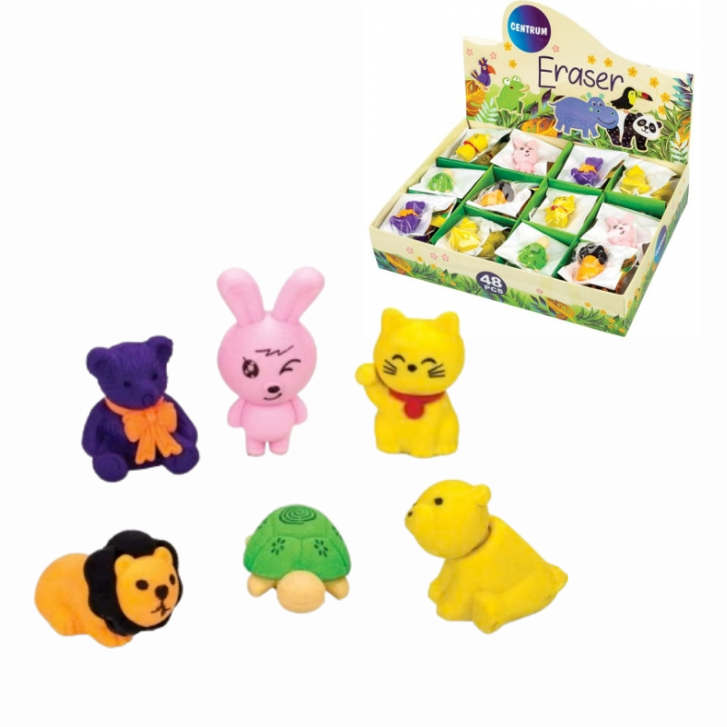 Radiera animaluțe în blister Centrum este un accesoriu simpatic pentru școală, realizat sub formă de animăluțe colorate și expresive. Șterge eficient urmele de creion și aduce un plus de veselie penarului. Produsul se vinde la bucată.