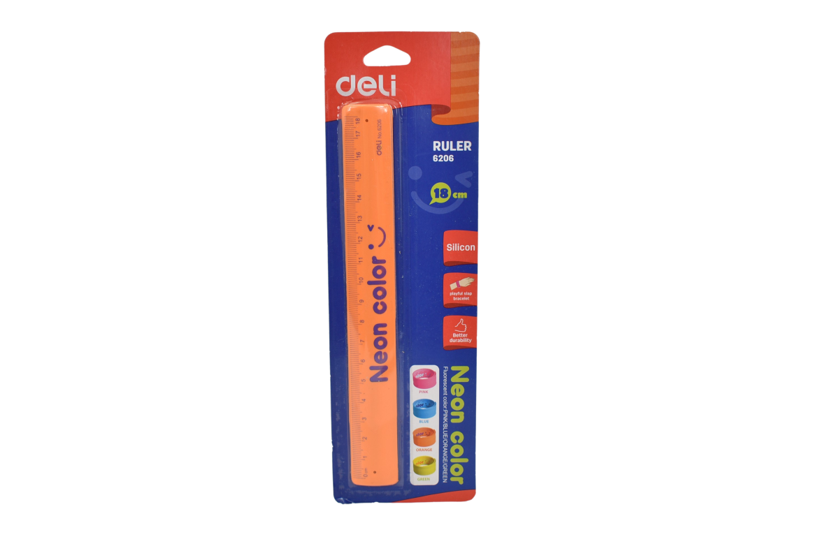 Rigla Flexibilă 18cm Oțel + Cauțiuc Deli DLE6206 în Culoarea Portocaliu