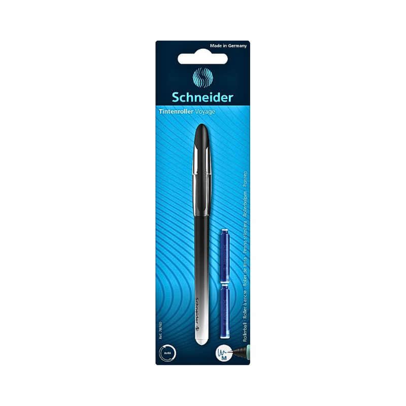 Schneider Voyage este rollerul perfect pentru cei care caută o experiență de scriere fluidă, într-un design elegant și sobru. Carcasa neagră cu accente metalice îi oferă un aspect profesional, iar forma sa ergonomică cu manșon moale asigură o prindere confortabilă chiar și în sesiunile lungi de scris.