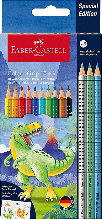 Creioane colorate Color Grip 2001 Dino 10+3 cu forma ergonomica triunghiulara.