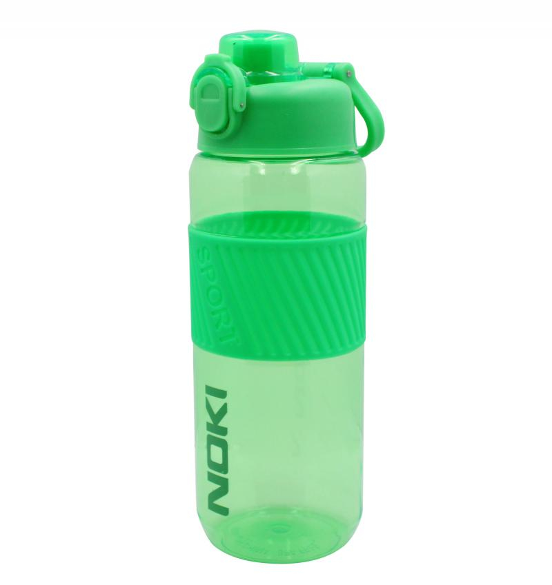 Sticlă de apă din tritan, cu capacitate de 850 ml, prevăzută cu sistem de deschidere automată și mâner de transport, în culoare verde, marca Noki.