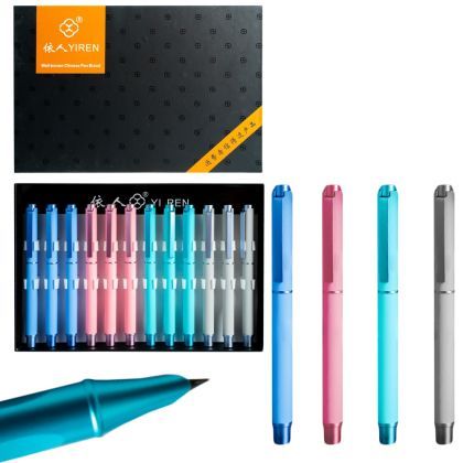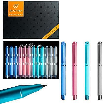 - Produsul este ambalat la set de 12 stilouri (culori: violet, roz, turcoaz, gri), in cutie din carton.