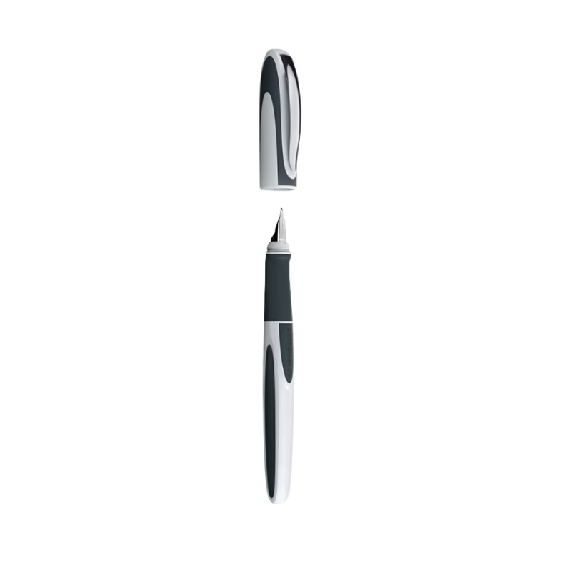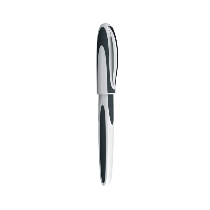 Stilou cu design alb-gri modern, cu penită M din oțel inoxidabil. Grip ergonomic pentru o prindere confortabilă. Funcționează cu patroane de cerneală standard.