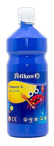 Acuarele Tempera, Pelikan, in flacon de 1 litru cu dop special pentru dozare precisa, vopsea pe baza de coloranti naturali, formula ecologica si non-toxica, culoare albastru ultramarin.