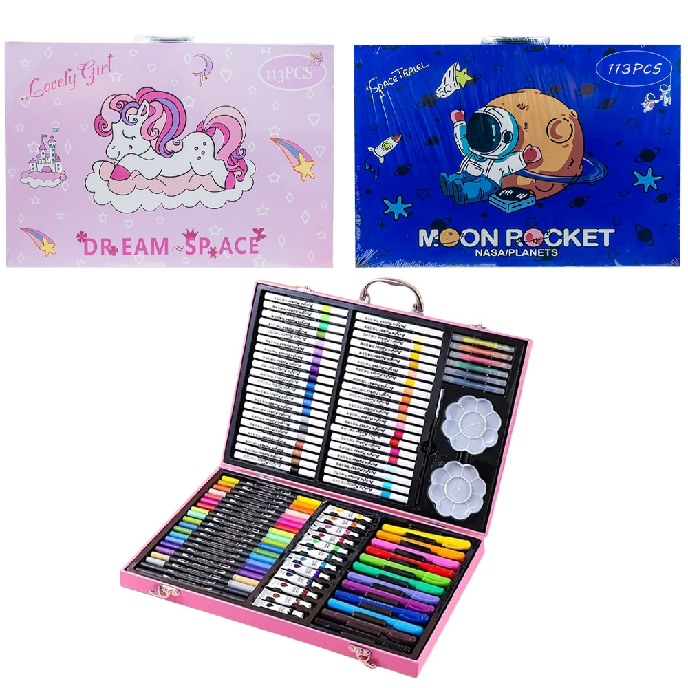 Descoperă magia culorilor cu o trusă completă de pictură și desen! Cu 113 piese variate și versatile, acest set îți oferă tot ce ai nevoie pentru creații expresive, indiferent dacă ești la început de drum sau deja pasionat de artă.
