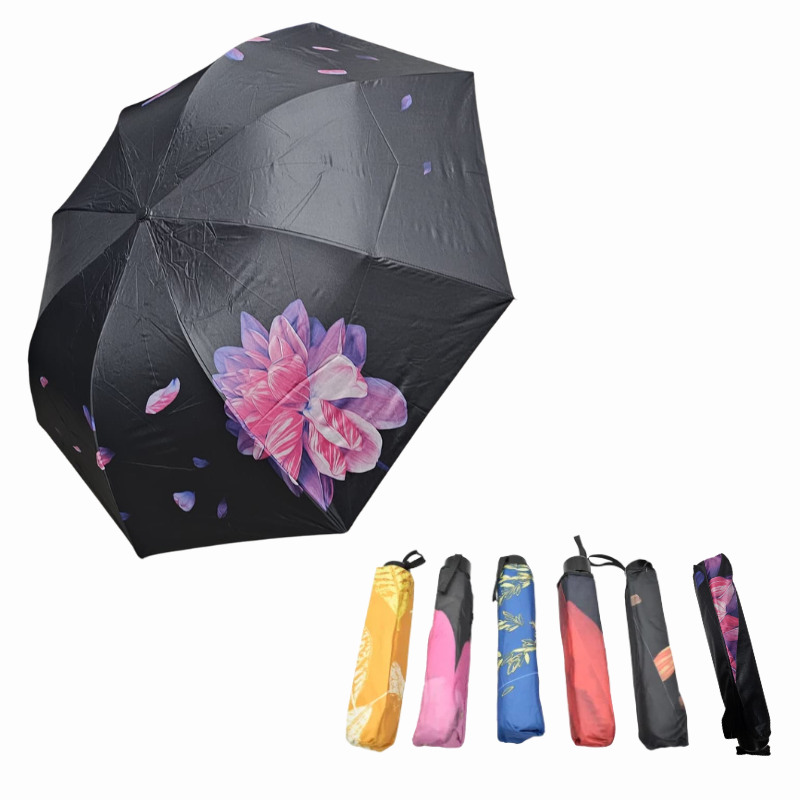 Umbrela pliabilă cu husă, dimensiuni 93x64/24 cm, model flori, este concepută pentru a îmbina funcționalitatea cu eleganța. Designul său floral adaugă o notă veselă și plină de culoare, potrivită pentru orice ținută.