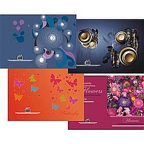Coperta fata si spate din carton rigid si lucios cu imagini diverse.