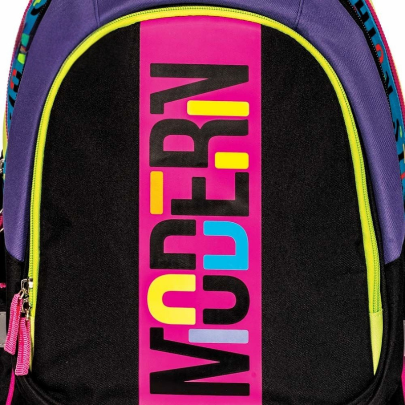 Ghiozdanul anatomic Light Modern, cu dimensiuni de 41x28x21 cm, dispune de un compartiment principal spațios, buzunar frontal cu fermoar și două buzunare laterale ideale pentru sticla de apă sau accesorii. Bretelele late, anatomice, buretate și complet reglabile, împreună cu spatele ergonomic, asigură confort și susținere la purtare zilnică. Materialul rezistent la uzură și designul minimalist îl fac perfect pentru școală, activități urbane sau excursii.