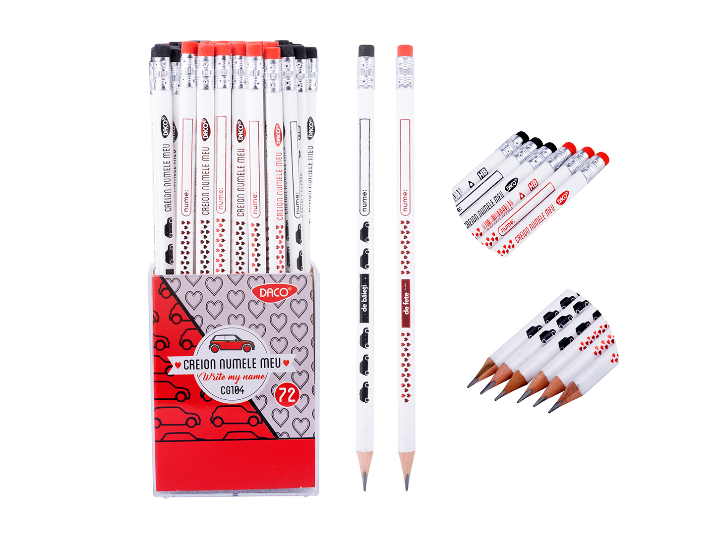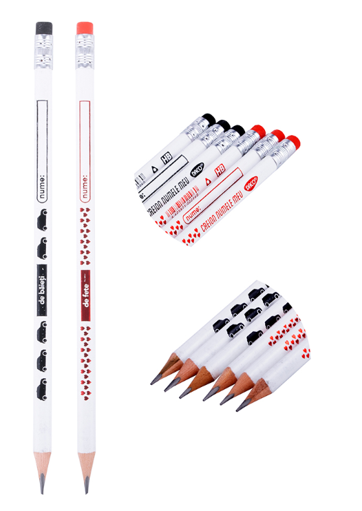 Radiera integrată permite corectarea rapidă a greșelilor, iar spațiul dedicat pentru scrierea numelui îl transformă într-un accesoriu perfect pentru școală, ajutând la identificarea rapidă a creionului în penar sau la clasă.