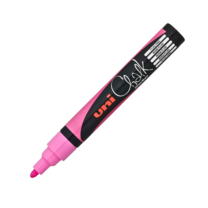Markerul cu cretă Uni Chalk roz fluorescent este alegerea ideală pentru a atrage atenția cu mesaje strălucitoare. Vârful rotund de 1.8–2.5 mm permite scrierea clară și desenul cu precizie. Se aplică pe suprafețe lucioase și se curăță ușor cu o lavetă umedă.