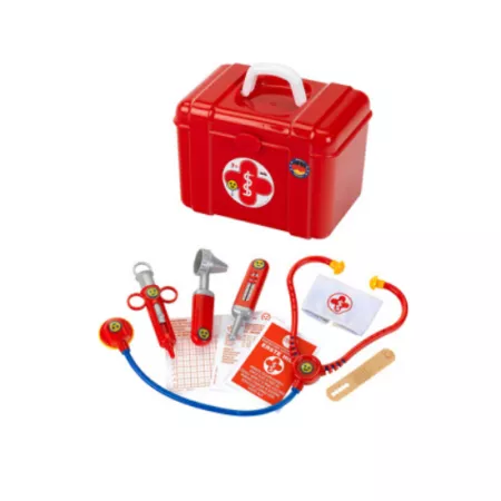 Transformă fiecare joacă într-o aventură medicală cu cutia de doctor de la Klein! Creată special pentru micii eroi, această trusă completă conține instrumente esențiale precum stetoscop, termometru, ciocănel, seringă și multe altele – toate într-o cutie rezistentă, cu margini rotunjite și mâner pentru transport ușor. Copilul tău va putea imita vizitele la medic într-un mod amuzant și educativ, reducând temerile și încurajând empatia. Ideală pentru jocuri de rol, dezvoltarea creativității și deprinderilor sociale, această cutie le oferă micuților ocazia de a învăța prin joacă.