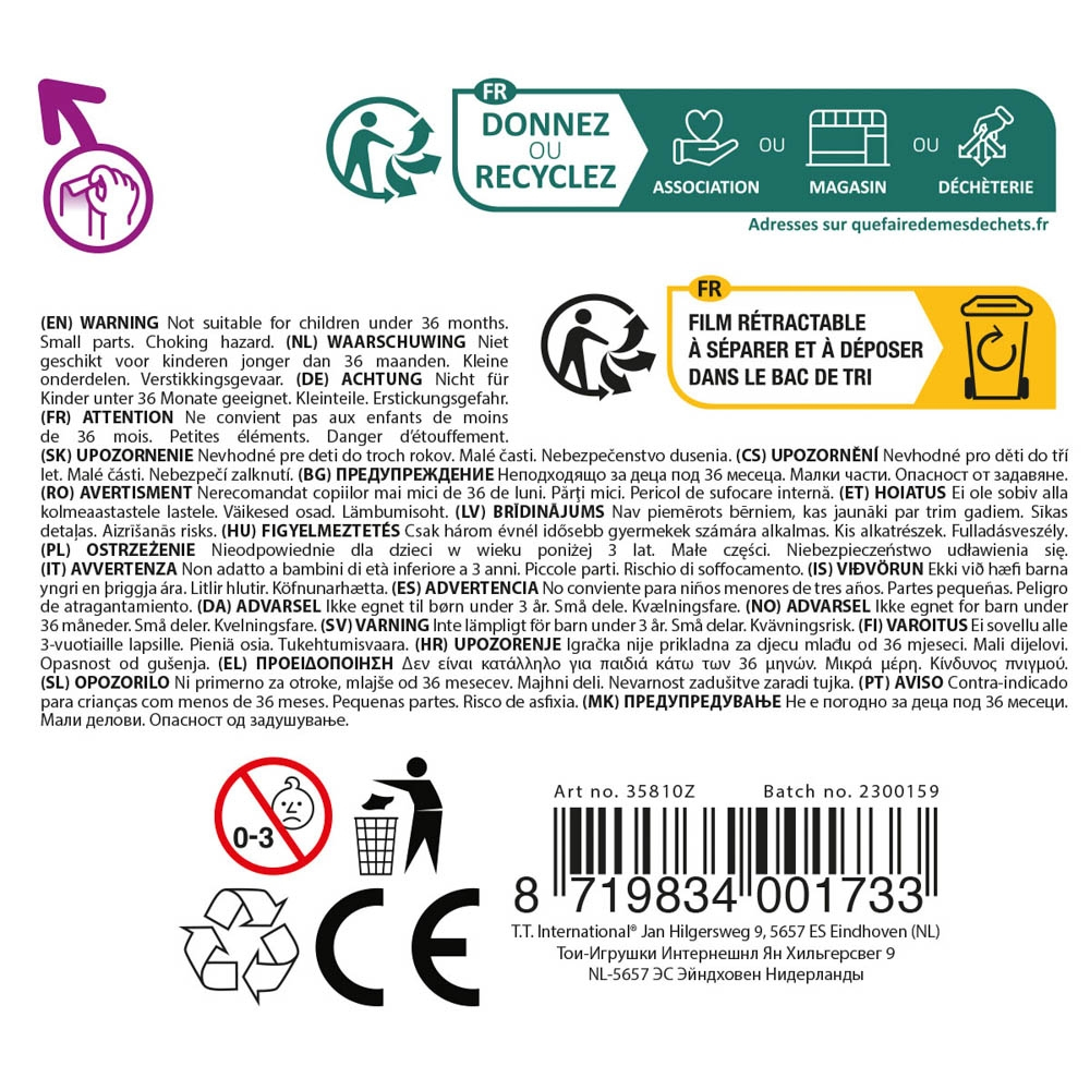 Acadeaua surpriză unicorn 10 cm Toi-Toys este un cadou distractiv și plin de magie pentru cei mici. Sub forma unei acadele mari, decorate cu inimioare și detalii în relief, se ascunde un unicorn colorat însoțit de un accesoriu simpatic – fie un cărucior, fie un pieptene. Există 6 tipuri diferite de unicorn, fiecare pregătit să aducă zâmbete și să stimuleze imaginația copiilor. Realizată din plastic rezistent și non-toxic, jucăria contribuie la dezvoltarea coordonării, dexterității și creativității prin jocuri de rol și povești inventate. Produsul este disponibil individual, cu dimensiunile de 10.5x10.5x19.5 cm și o greutate de 0.155 kg, fiind recomandat copiilor cu vârsta peste 3 ani.