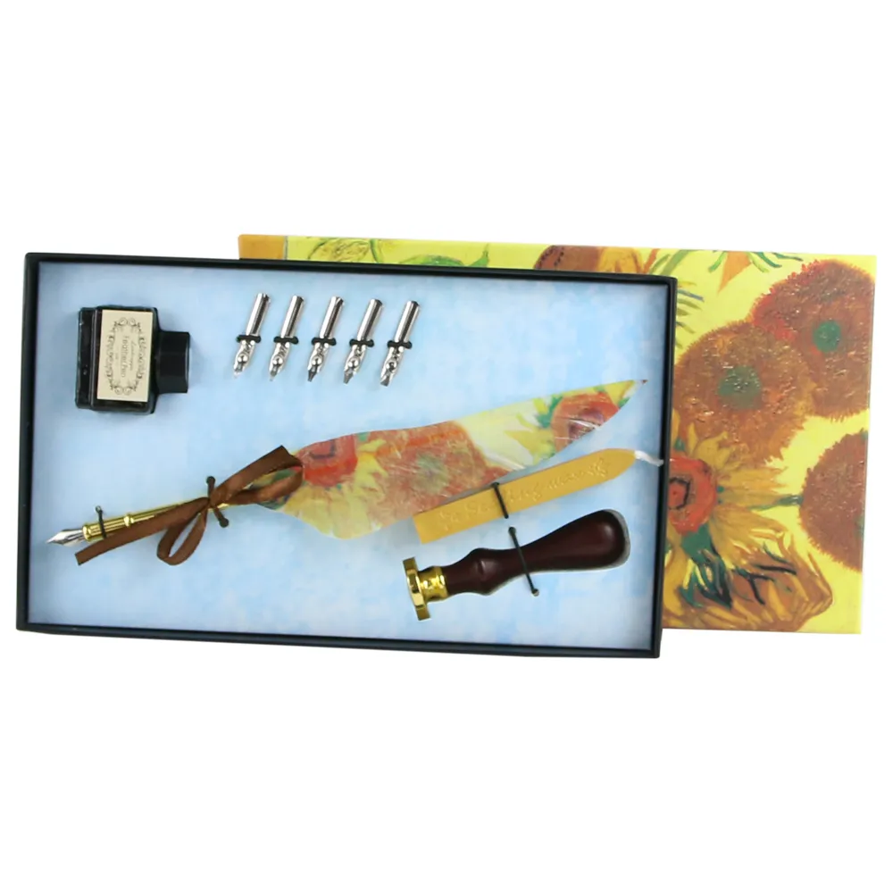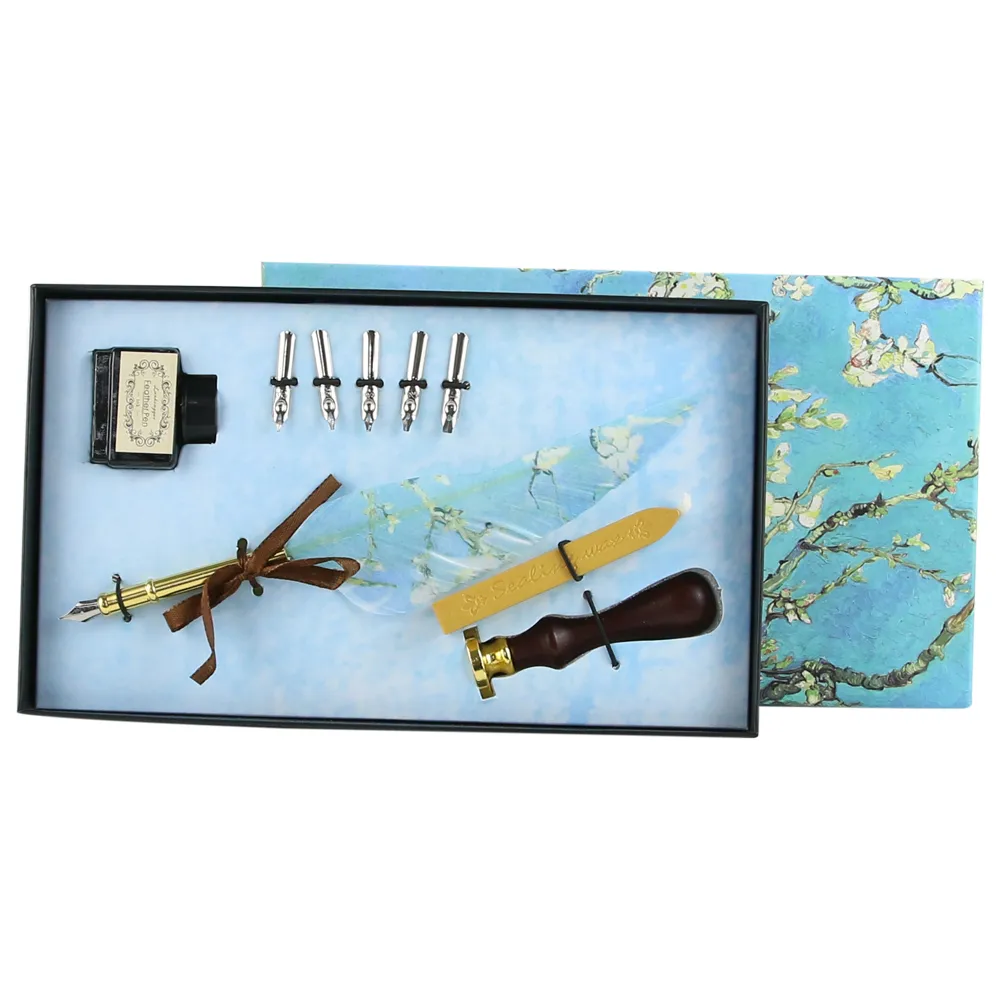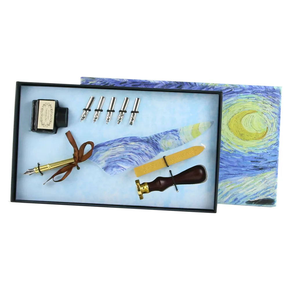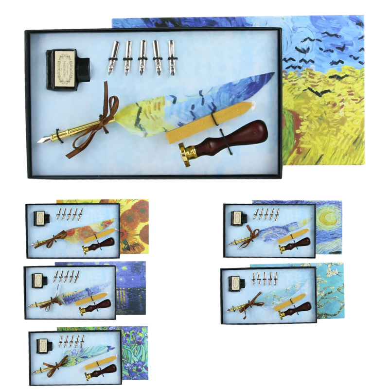Cerneala include asigurări un flux constant și clar, potrivit atât pentru caligrafie, cât și pentru scris decorativ sau notițe speciale. Setul este complet de accesorii elegante și este prezentat într-o cutie decorativă cu design artistic, inspirată din lucrări celebre, ceea ce îl transformă într-un cadou deosebit sau într-un obiect de colecție.