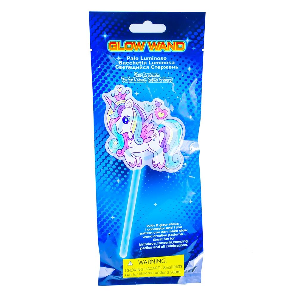 - Setul include 2 betisoare stralucitoare, 1 tub pentru conexiune, 1 suport si 1 folie PVC cu imprimeu Unicorn.