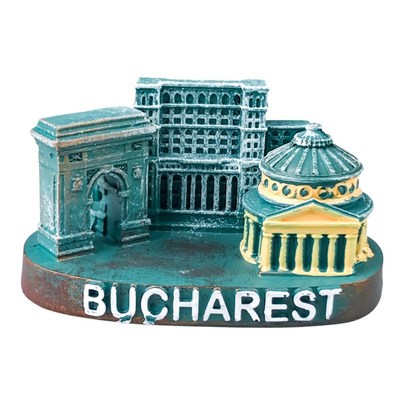 Machetă decorativă din rășină ce redă simboluri emblematice ale Bucureștiului, într-un design compact și expresiv. Disponibilă în mai multe variante de culoare, este ideală ca suvenir sau obiect decorativ. Un mic omagiu adus capitalei, ușor de integrat în orice spațiu.