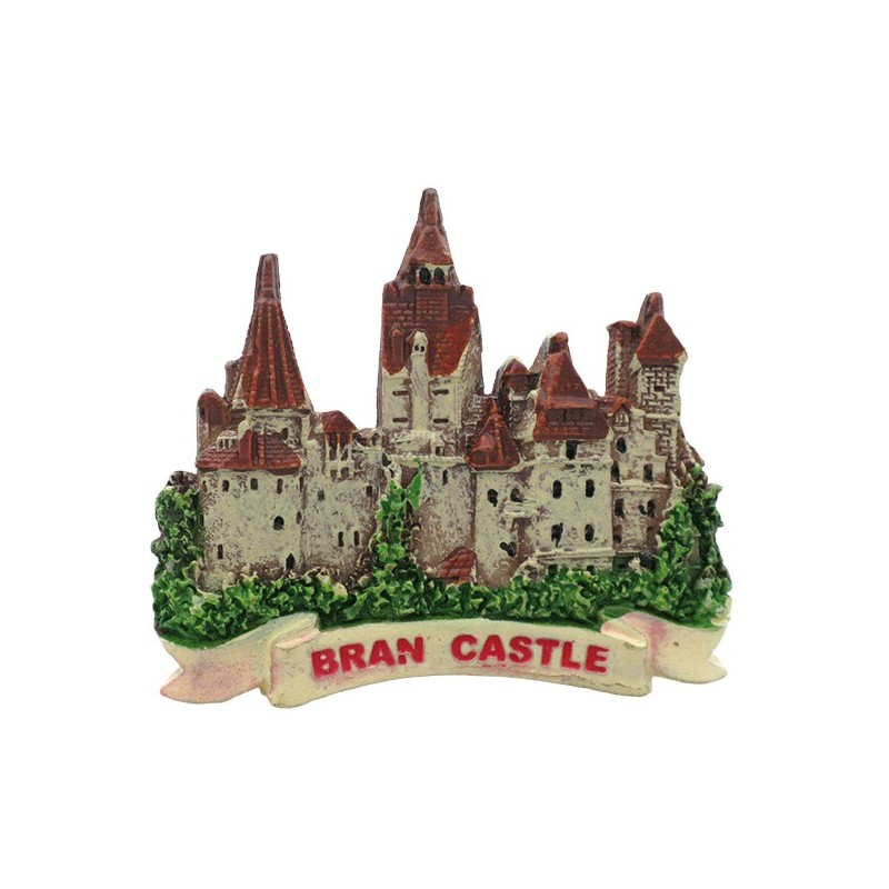 Magnetul este realizat din rășină și domeniul Castelului Bran într-o formă detaliată, cu elemente arhitecturale bine conturate. Dimensiunile de aproximativ 7x6 cm îl fac ușor de integrat pe frigider sau pe alte suprafețe metalice. Aspectul său decorativ îl transformă într-un suvenir inspirat dintr-unul dintre cele mai cunoscute obiective turistice din România, fiind atât pentru colecție, cât și pentru a fi oferit cadou.