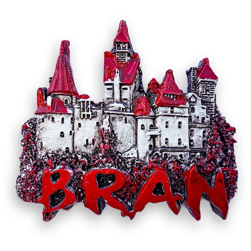 Acest magnet din rășină reprezintă Castelul Bran, redat cu atenție la detalii și cu un design tridimensional care evidențiază turnurile și structura emblematică a castelului. Acoperișurile roșii și texturile reliefate creează un efect vizual puternic, oferind magnetului un aspect autentic și expresiv.