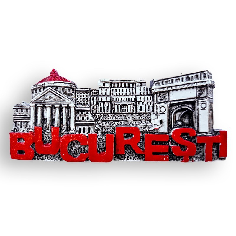 Acest magnet este confecționat din rășină și are ca tematică principalele atracții turistice din București, respectiv Ateneul Român, Palatul Parlamentului și Arcul de Triumf. Elementele sunt realizate în relief și sunt însoțite de inscripția București, oferind un aspect decorativ clar și ușor de recunoscut. Magnetul este conceput ca obiect decorativ și poate fi așezat pe frigider sau pe alte suprafețe metalice. Dimensiunile produsului sunt de 9x4 cm.
