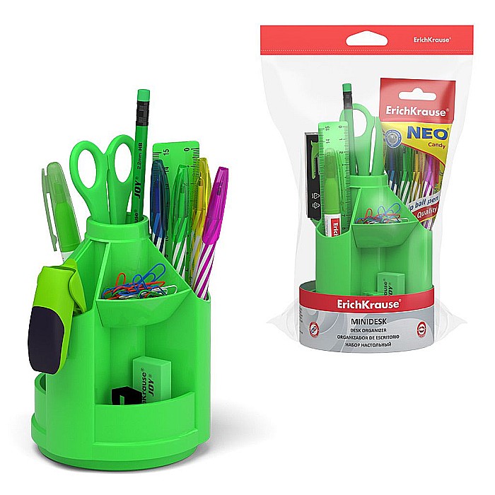 Organizator de birou ErichKrause Mini Desk Neon Solid verde cu 13 accesorii
