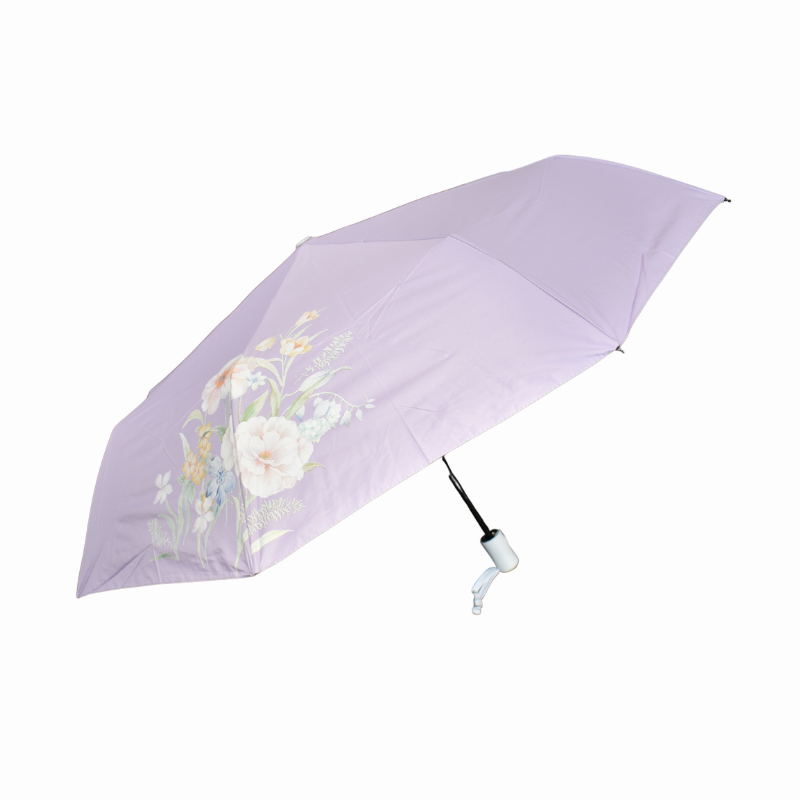 Structura umbrelei este robustă, fiind dotată cu un mecanism de deschidere și închidere fluid, adaptat pentru o utilizare zilnică fără efort. Dimensiunea sa, odată pliată, o face extrem de ergonomică, potrivindu-se perfect în rucsacuri sau genți de dimensiuni medii. Fiecare umbrelă vine însoțită de o husă textilă proprie, realizată din același material cu imprimeu floral, care protejează restul obiectelor din geantă de contactul cu materialul ud și facilitează o depozitare ordonată în perioadele în care nu este folosită.