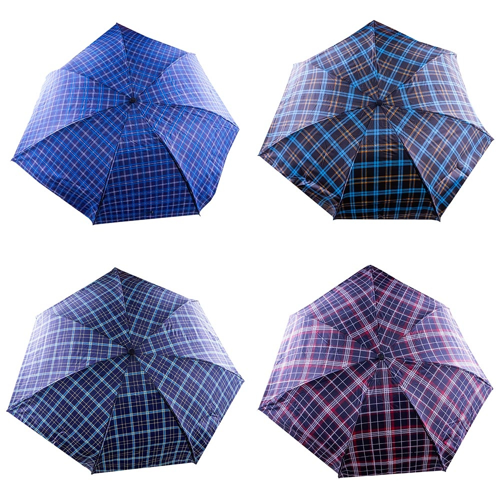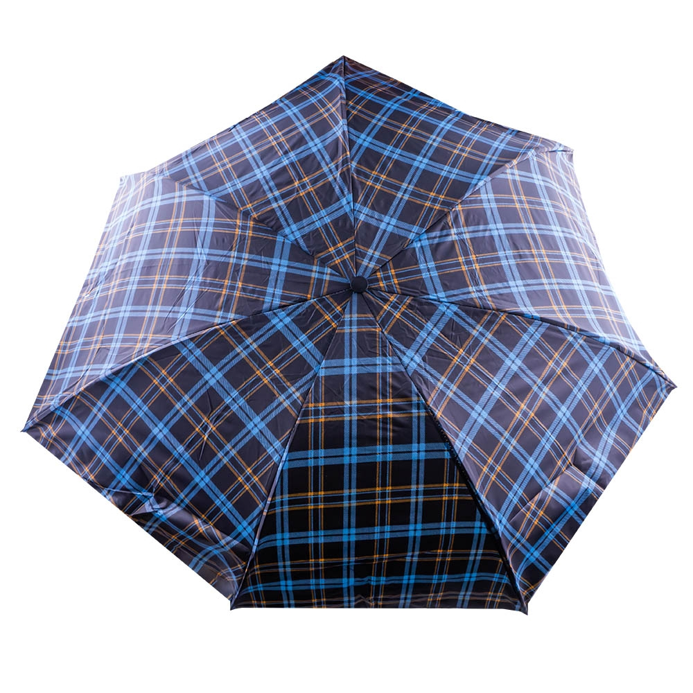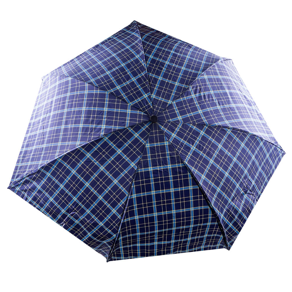 Materialul din care este fabricata cupola este un poliester de inalta calitate, tratat pentru a fi complet impermeabil. Designul vizual este unul versatil, disponibil in diverse modele de carouri multicolore pe baze de albastru sau bleumarin, oferind un aspect sobru si modern. Manerul ergonomic din plastic este prevazut cu un inel din snur textil, facilitand agatarea sau transportul pe incheietura mainii. Pentru o depozitare ingrijita, umbrela este livrata alaturi de o husa de protectie din PVC si panza, care previne umezirea obiectelor din jur dupa utilizare.