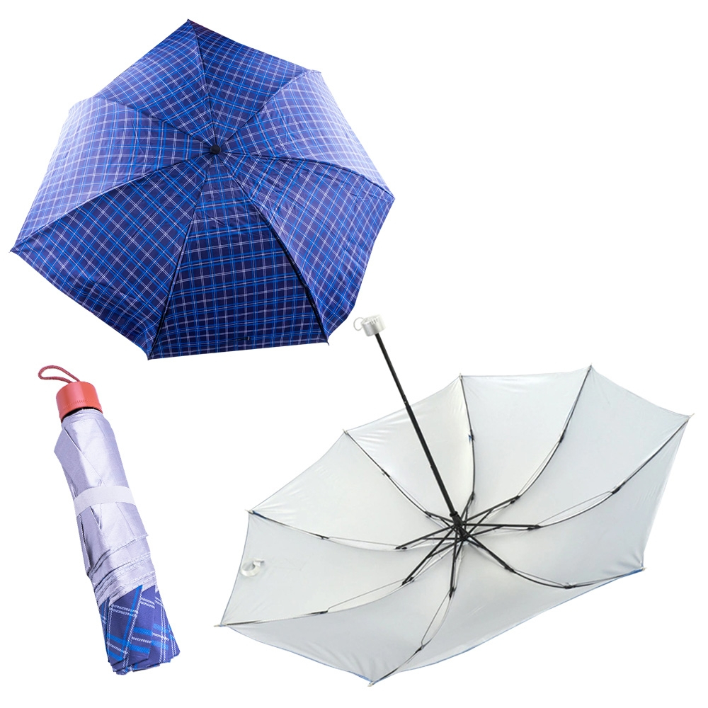Umbrela scurta manuala este accesoriul indispensabil pentru zilele ploioase, combinand functionalitatea cu un design compact si elegant. Confectionata din poliester impermeabil cu doua fete, aceasta prezinta un imprimeu clasic in carouri pe exterior si un strat argintiu la interior. Structura sa pliabila permite reducerea dimensiunilor la doar 24 cm, facand-o extrem de practica pentru a fi transportata in geanta sau rucsac, fara a ocupa mult spatiu.
