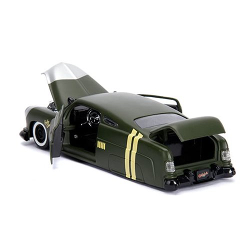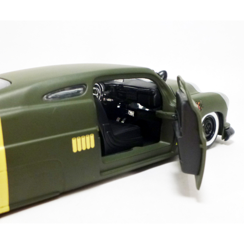 Masinuta de metal, Mercury, model 1951, freewheel, usile si capota se pot deschide. Masinuta este construita la o scara de 1:24. Setul include si o figurina de metal, 7 cm