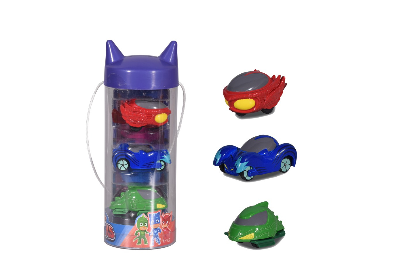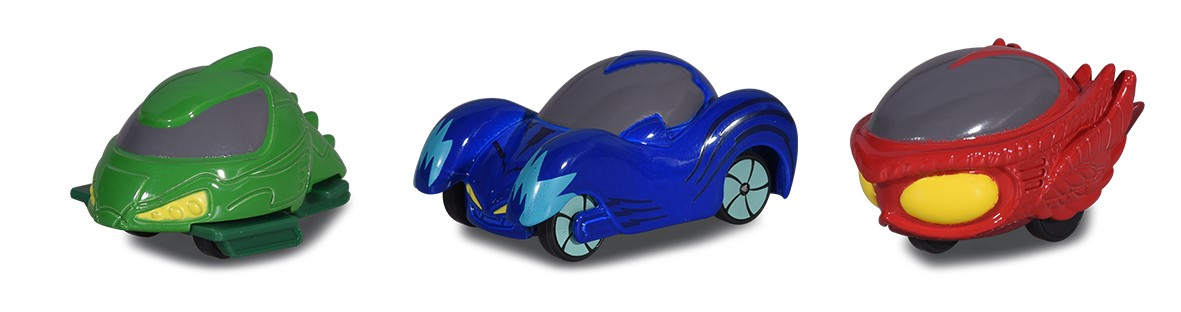 PJ Masks Micro Racer Team: trei eroi – o misiune! Ce ar fi Catboy, Owlette si Gekko fara vehiculele lor? Popularul serial animat vaneaza raufacatorii noaptea cu pisica rapida, cu bufnita si Gekkomobile. Iar cu versiunea in miniatura de la Dickie Toys, aventurile celor trei eroi pot fi recreate oricand, oriunde. Vehiculele, care au 4 centimetri lungime, vin in ambalaje cadou intr-un design elegant de sediu si sunt ideea de cadou perfecta pentru micii fani cu varsta de peste trei ani.