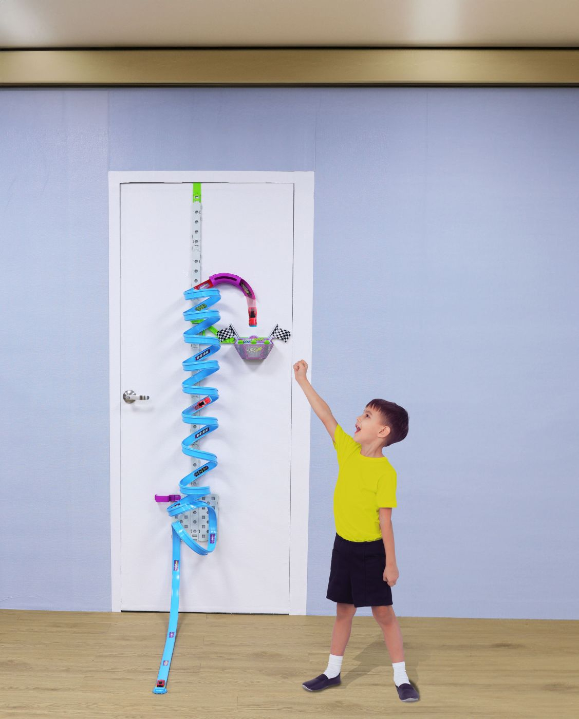 Pregateste-te pentru o cursa verticala spectaculoasa cu setul "Cyber Racers Vertical Launch Track Set"! Acest set inovator se agata de usa dormitorului tau si te provoaca sa lansezi masinile printr-un traseu cu bucle multiple, pana la atingerea liniei de sosire din stratosfera. Setul se monteaza pe usa dormitorului, economisind spatiu si oferind o experienta de joc unica. Traseul contine suficiente piese pentru a construi 10 bucle sau mai multe, creand un traseu vertical complex si provocator. Setul include 2 masinute pullback Cyber Racers, care se propulseaza singure dupa ce sunt trase inapoi, asigurand curse dinamice. Setul include conectori din plastic pentru asamblarea traseului si o agatatoare speciala pentru montarea pe usa. Traseul include o sectiune de intoarcere cu un obiectiv, care marcheaza linia de sosire si adauga un element de provocare. Traseul asamblat atinge o inaltime de aproximativ 2 metri, oferind o experienta de joc impresionanta. Setul este prezentat intr-o cutie cu fereastra, permitand vizualizarea continutului si oferind o optiune excelenta pentru cadou. Setul "Cyber Racers Vertical Launch Track Set" este o alegere excelenta pentru cei care cauta o experienta de joc unica si inovatoare. Cu traseul sau vertical montat pe usa, buclele multiple si masinutele pullback, acest set promite ore de distractie si competitie amicala.