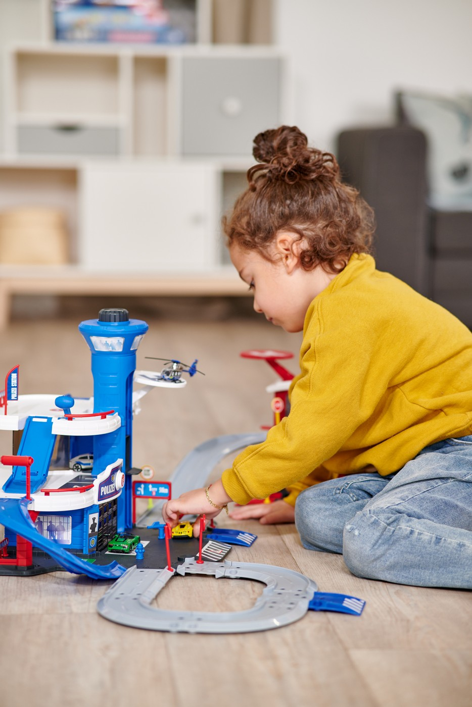 Statie de joaca versatila - pompieri, medic de urgenta sau politie: Toate vehiculele de urgenta se aduna la aceasta statie de salvare cool si isi asteapta urmatoarea misiune in camera copiilor. Vehiculul de jucarie zboara pe rampa de lansare rapida de la etajul 2 pana la locatia sa. Elicopterele pot ateriza cu usurinta pe heliportul mare. La deschiderea garajului, controlul liftului sau directia masinii de jucarie: statia de joaca promoveaza si imaginatia si motricitatea copiilor!