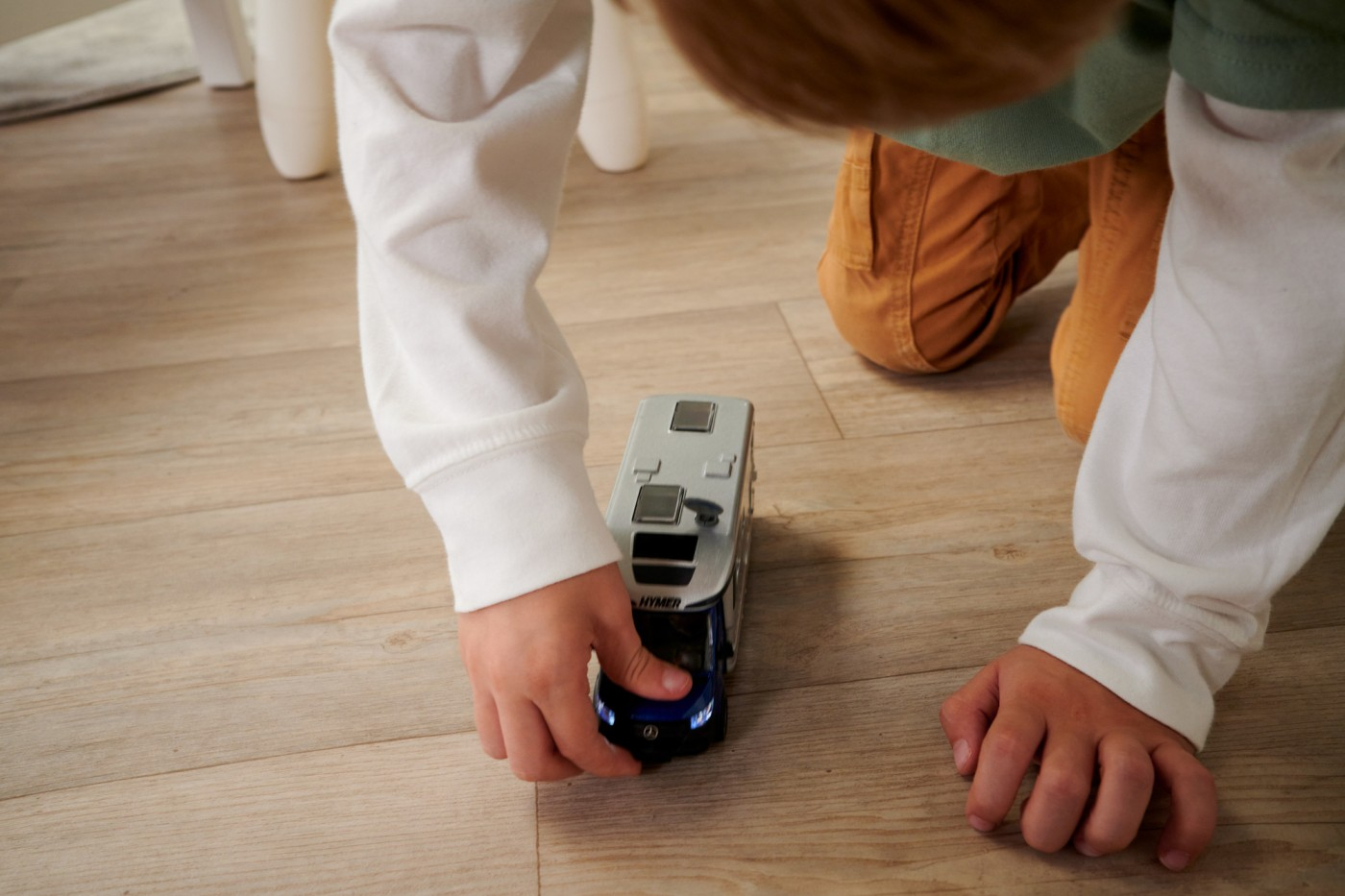 Majorette – Camper van HYMER B-Class MasterLine – rulota premium la scara 1:43, vehicul de jucarie pentru colectionari si copii cu varsta de 3 ani si peste. Proiectat pe baza vehiculului original, modelul are o multime de functii practice si realiste pentru a va distra, inclusiv doua efecte sonore diferite, doua faruri si iluminare interioara. De asemenea, dispune de anvelope din cauciuc moale, cu un model de benzi de rulare, ferestre transparente si antena de satelit rotativa pliabila. Atat cabina soferului, cat si sectiunea de rulota sunt realizate din metal. Celelalte parti sunt fabricate din plastic.