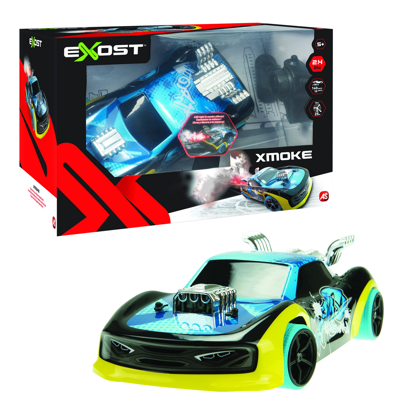 Masinuta cu telecomanda marca EXOST, construita pe o scara de 1:14, cu transmisie 2,4GHZ si 2 lumini LED pentru efecte adevarate de fum si efect de miscare. Cu un design urban nou, modern si fum controlat cu telecomanda. Varsta recomandata 5+. Functioneaza cu baterii 5xAA (nu sunt incluse) pentru vehicul, 2xAA (nu sunt incluse) pentru telecomanda.