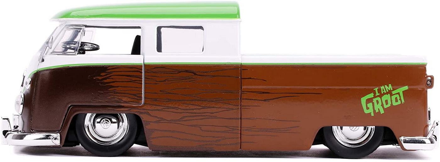 Masinuta de metal Volkswagen, a personajului Groot, este construita la scara 1 la 24. Portierele se pot deschide. Setul include o figurina de metal Groot.
