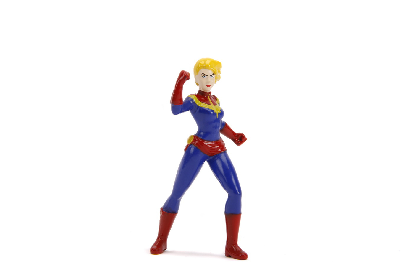 Masinuta de metal Marvel Ford Mustang. Portierele, capota si portbagajul se pot deschide. Masina este construita la o scara de 1:24, include si figurina de metal Captain Marvel. Masina de colectie are caroseria turnata si confectionata din metal si componente de plastic. Portierele, capota si portbagajul se deschid lasand sa se vada detaliile interioare create cu mare precizie.