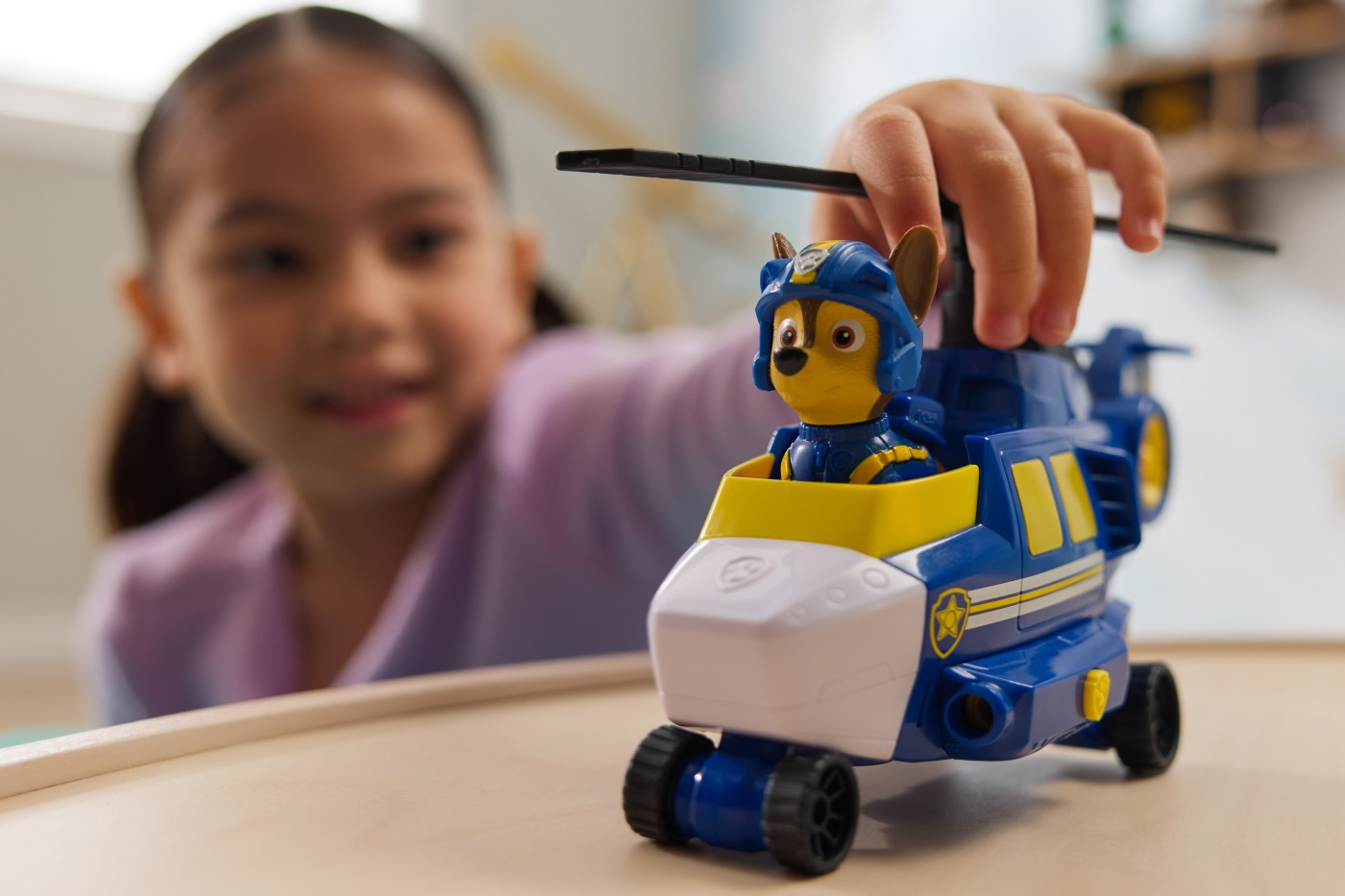 Zboara in actiune cu Air Rescue Skye si jucaria ei de salvare din incendii, avionul Hero Claw. Cand este timpul pentru o misiune de salvare plina de actiune, blocheaza picioarele lui Skye in pozitie in cabina de pilotaj inainte de a decola in misiunea ta. Salveaza-ti iepurasul de jucarie apasand un buton de pe avion pentru a extinde gheara, apoi prinde iepurasul cu cosul de salvare si du-l in siguranta. Skye are o inaltime de peste 5 cm si este echipata cu jacheta si casca de zbor de culoare roz Air Rescue. Pentru si mai multe moduri de joaca interesante, cauta-l pe Chase in elicopterul sau de jucarie Hero Helicopter si pe Marshall cu avionul sau de jucarie Hero Hydro Plane, pentru a crea echipa de salvare perfecta. Jucariile pentru prescolari inspirate din Patrula catelusilor si jucariile de invatare pentru copii mici sunt cadouri pentru copiii si fanii serialului, incurajand jocul plin de imaginatie si imbunatatirea abilitatilor motorii fine. Retraieste momentele tale preferate din sezoanele Patrula catelusilor, cum ar fi Mighty Pups si filmul Patrula catelusilor, apoi creeaza-ti propriile aventuri cu cateii din Patrula catelusilor si masinutele lor (vandute separat). Creste-ti entuziasmul cu seturile complete ale echipei Action Pups si Air Rescue, care includ vehicule din Patrula catelusilor, personaje de actiune si jucarii pentru copiii mici, pentru ore nesfarsite de aventuri fantastice cu catelusi, inspirate din serial.