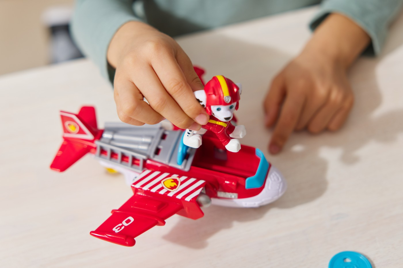 Zboara in actiune cu Air Rescue Skye si jucaria ei de salvare din incendii, avionul Hero Claw. Cand este timpul pentru o misiune de salvare plina de actiune, blocheaza picioarele lui Skye in pozitie in cabina de pilotaj inainte de a decola in misiunea ta. Salveaza-ti iepurasul de jucarie apasand un buton de pe avion pentru a extinde gheara, apoi prinde iepurasul cu cosul de salvare si du-l in siguranta. Skye are o inaltime de peste 5 cm si este echipata cu jacheta si casca de zbor de culoare roz Air Rescue. Pentru si mai multe moduri de joaca interesante, cauta-l pe Chase in elicopterul sau de jucarie Hero Helicopter si pe Marshall cu avionul sau de jucarie Hero Hydro Plane, pentru a crea echipa de salvare perfecta. Jucariile pentru prescolari inspirate din Patrula catelusilor si jucariile de invatare pentru copii mici sunt cadouri pentru copiii si fanii serialului, incurajand jocul plin de imaginatie si imbunatatirea abilitatilor motorii fine. Retraieste momentele tale preferate din sezoanele Patrula catelusilor, cum ar fi Mighty Pups si filmul Patrula catelusilor, apoi creeaza-ti propriile aventuri cu cateii din Patrula catelusilor si masinutele lor (vandute separat). Creste-ti entuziasmul cu seturile complete ale echipei Action Pups si Air Rescue, care includ vehicule din Patrula catelusilor, personaje de actiune si jucarii pentru copiii mici, pentru ore nesfarsite de aventuri fantastice cu catelusi, inspirate din serial.