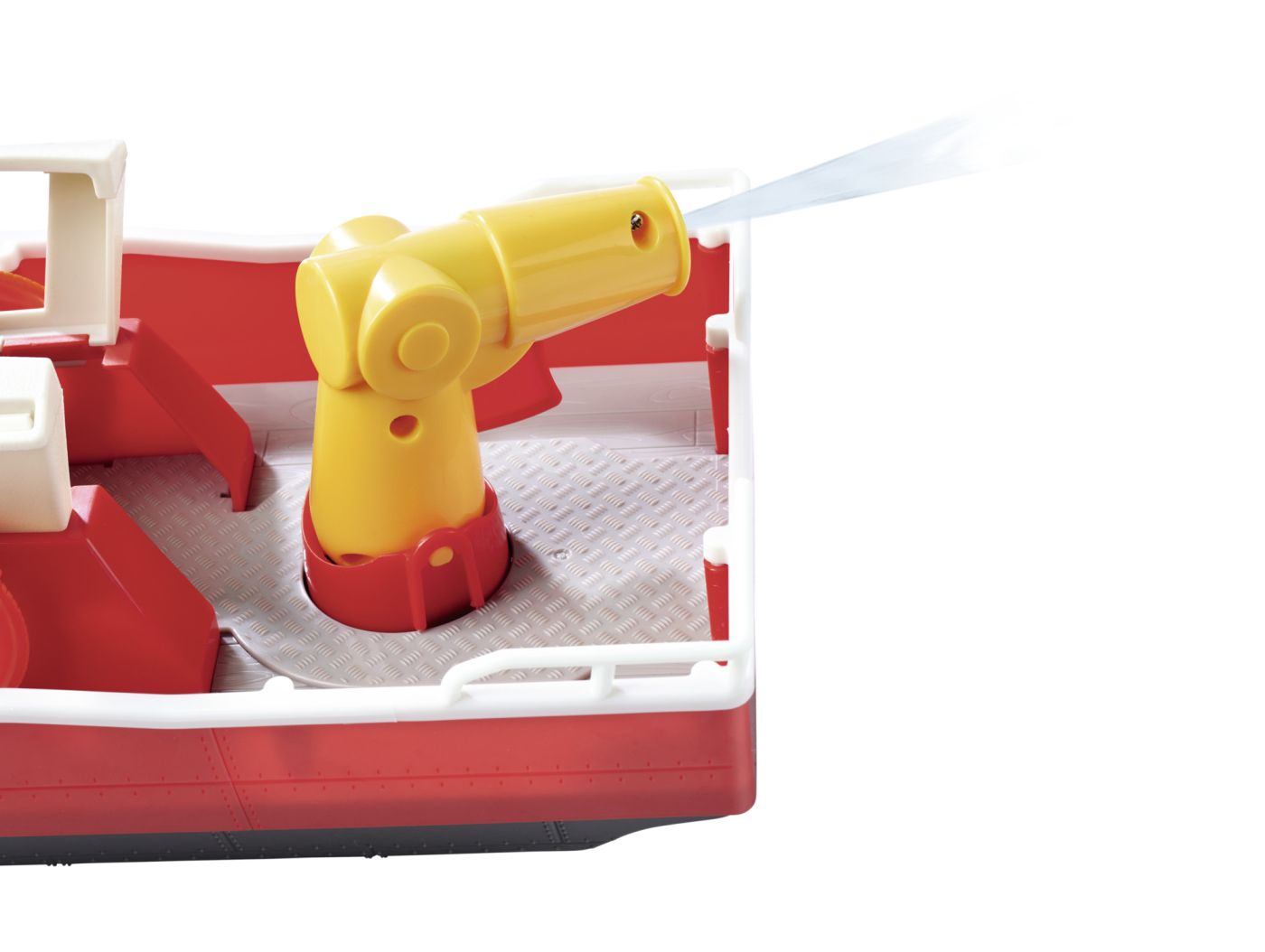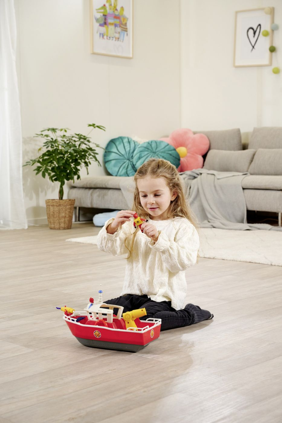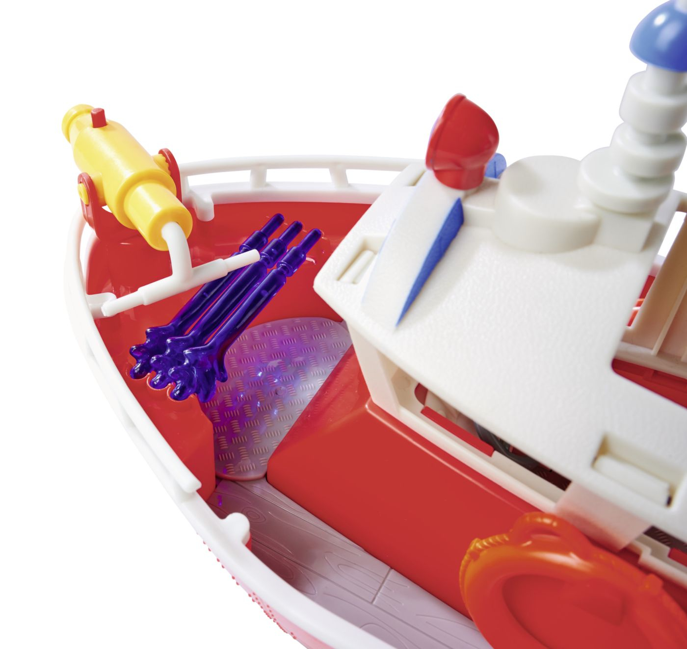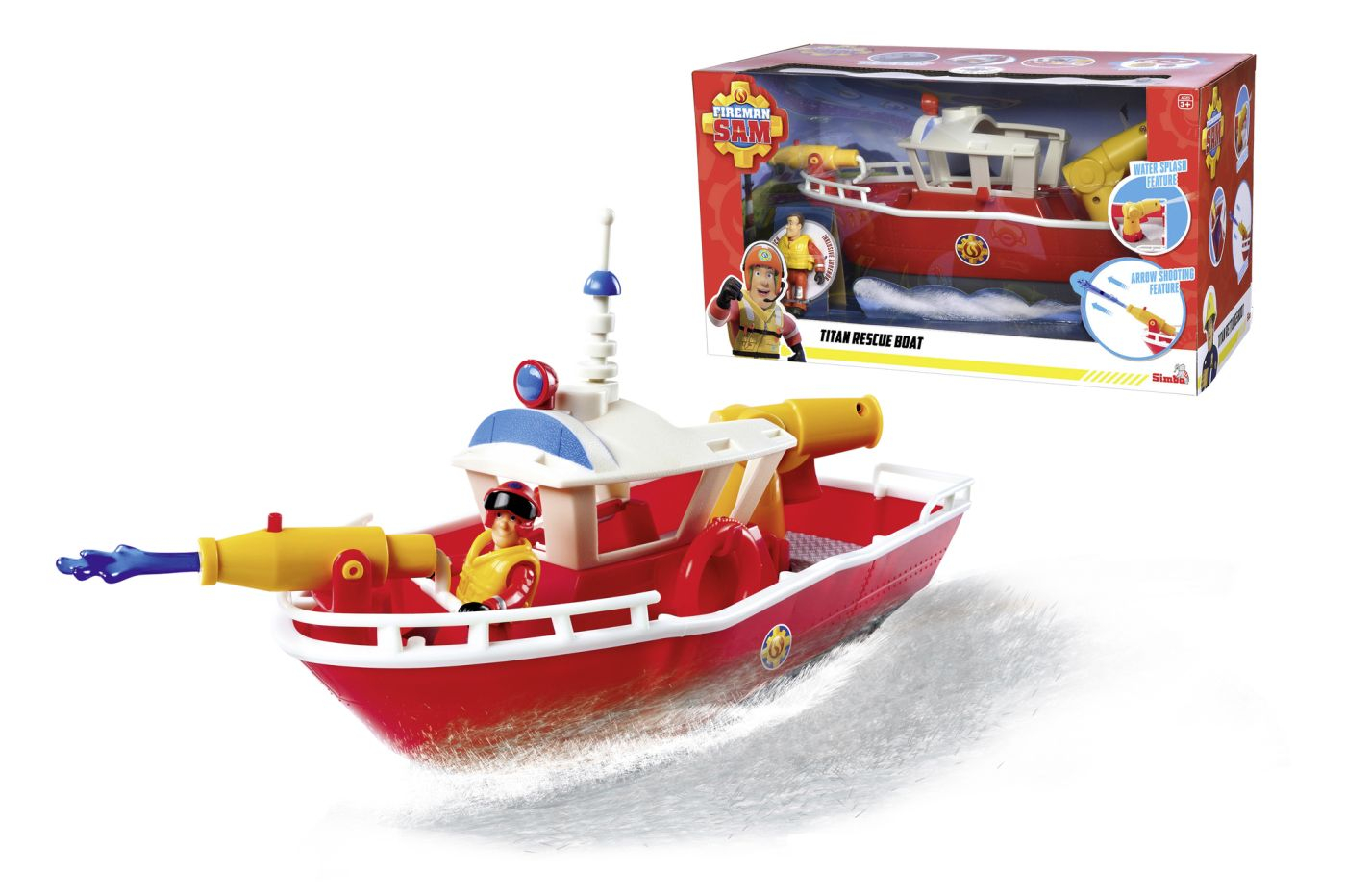 Vehicul de urgenta - Titan este unul dintre vehiculele de apa ale pompierului Sam si poate fi folosit de copii in cresa, precum si in apa. Pluteste – barca rosie de foc pluteste pe apa, facand-o potrivita pentru joaca. Cu tunuri de apa – barca de salvare lunga de 32 cm are la ambele capete un tun cu apa, cu care copiii pot trage sageti cu apa sau pot stropi cu apa. Cu figurina Sam – pe langa multe accesorii, setul include si o figurina Sam pompierului care poate prelua carma navei. Potrivit pentru copii cu varsta de 3 ani si peste.