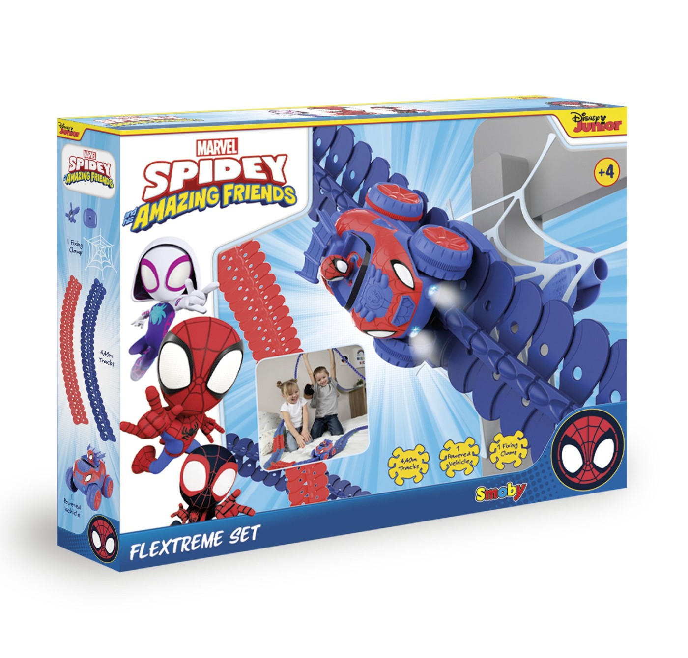 Scufundati-va in lumea uimitoare a Flextreme cu Spidey! Imaginati-va si construiti mai multe circuite datorita pistelor flexibile, folosind tot ce puteti gasi in jurul vostru. Apoi glisati vehiculul Spidey pe pista si lansati-l intr-o cursa nebuna: urcari, coborari, trucuri cu susul in jos, bucle, invartiri, este capabil de orice!